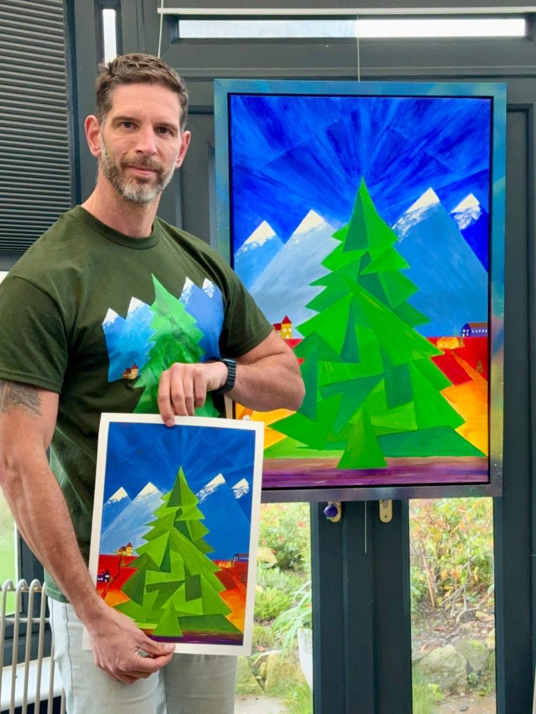 Set against a backdrop of snow-capped mountains and a deep, radiant indigo sky, the composition is filled with my favourite storytelling elements. You’ll find colourful houses nestled into the landscape, glowing with warmth, while windy roads lead the eye through a playful, atmospheric world. To complete the festive scene, a tiny snowman stands guard, adding a touch of whimsy to this structured wonderland.