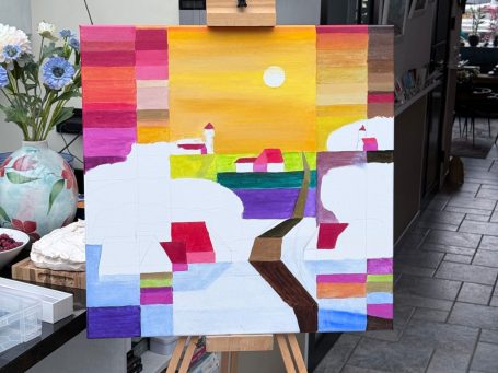 Painted during the grey, overcast days of the Christmas season, this painting was born from a desire to recapture the intense energy of a late summer sky. It serves as a visual escape, trading winter’s muted tones for a saturated, rhythmic celebration of light and life.